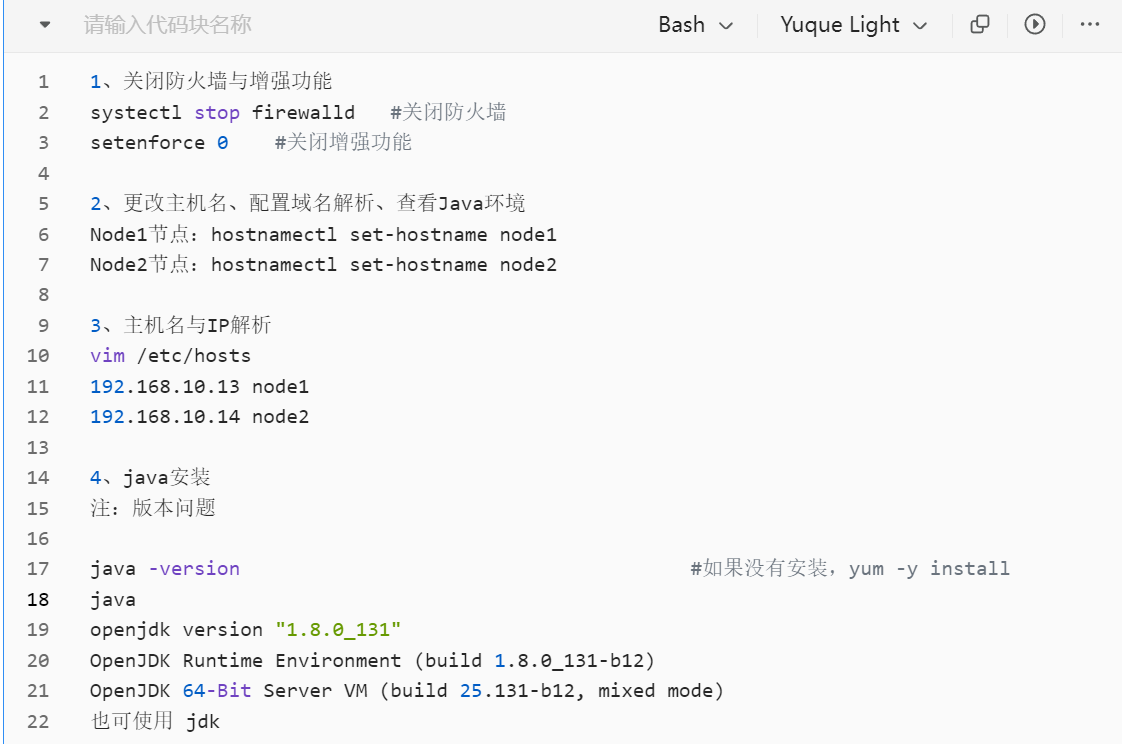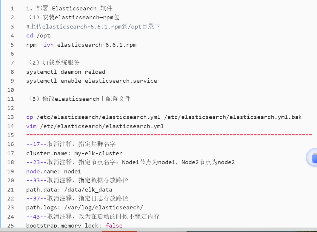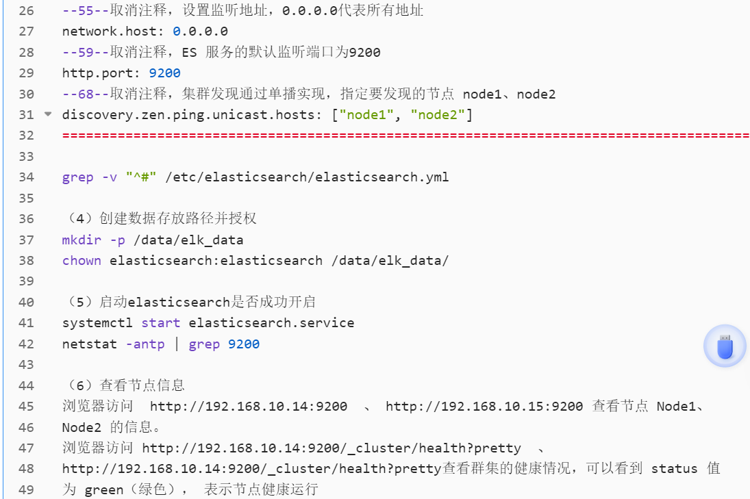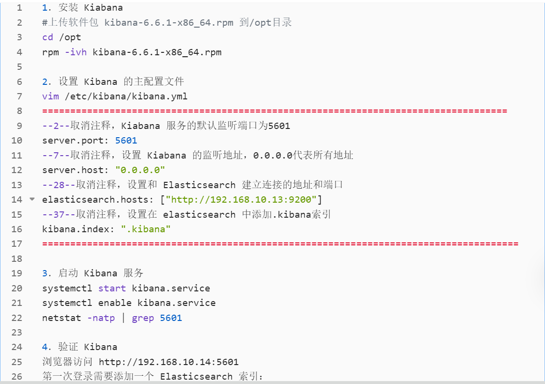 | Node1节点(2C/4G) | node1/192.168.10.14 | Elasticsearch(集群) Kibana |