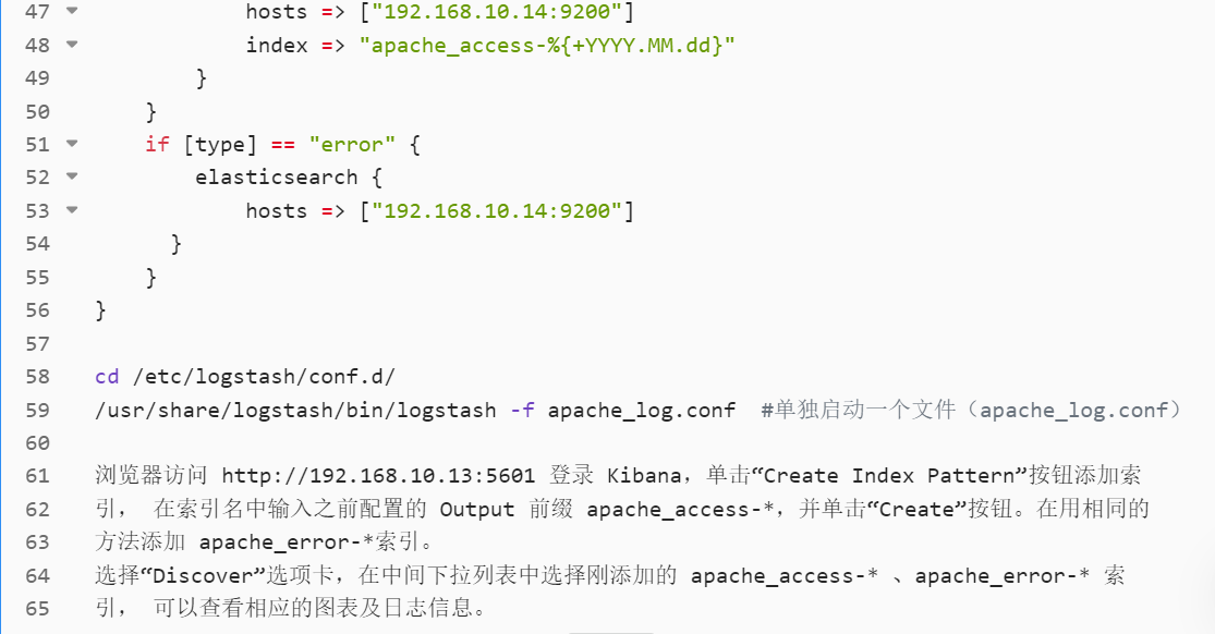 | Apache节点 | apache/192.168.10.50 | Logstash Apache |