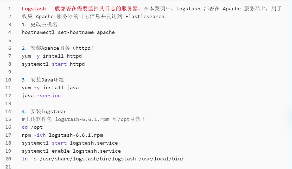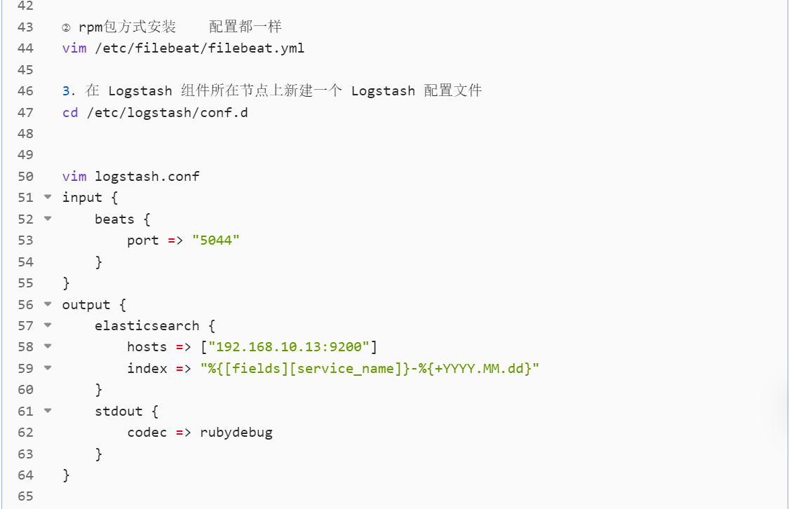 (1)在所有需要收集日志的服务器上部署Logstash;或者先将日志进行集中化管理在日志服务器上,在日志服务器上部署 Logstash。