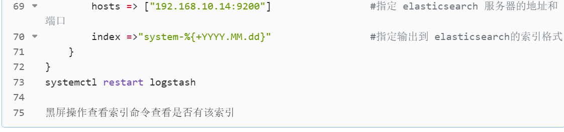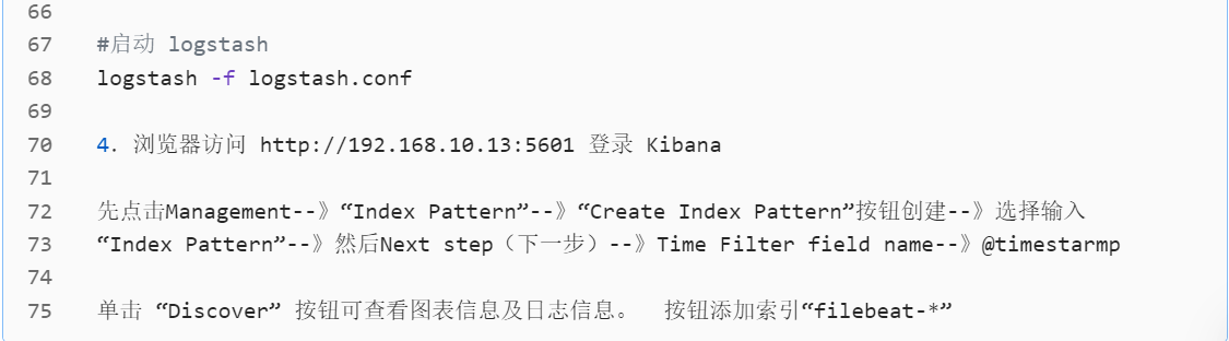 (2)Logstash 收集日志,将日志格式化并输出到 Elasticsearch 群集中。