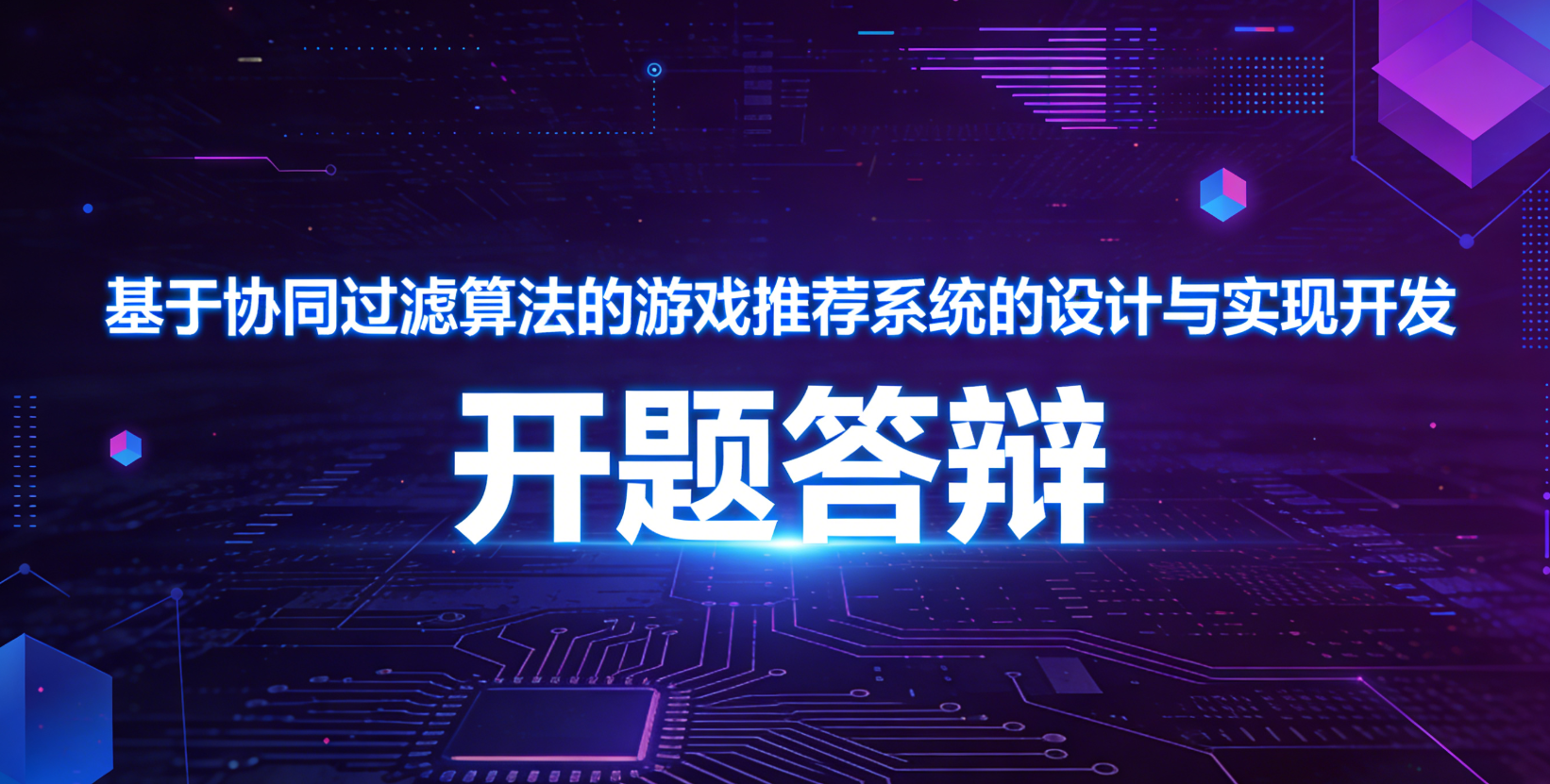 各位老师好,我是xx同学,本次毕业设计的题目是"基于协同过滤算法的游戏推荐系统"。系统采用 B/S 架构,前端用 Vue+JS+CSS,后端用 SpringBoot+MySQL,IDEA 开发。主要分用户端和管理端:用户可注册登录、评分游戏、查看个性化推荐、搜索与反馈;管理员可管理游戏信息、用户信息及公告。核心算法是协同过滤,通过评分、收藏、点击数据算相似用户,把可能喜欢的游戏推荐给目标用户。下面请各位老师提问。