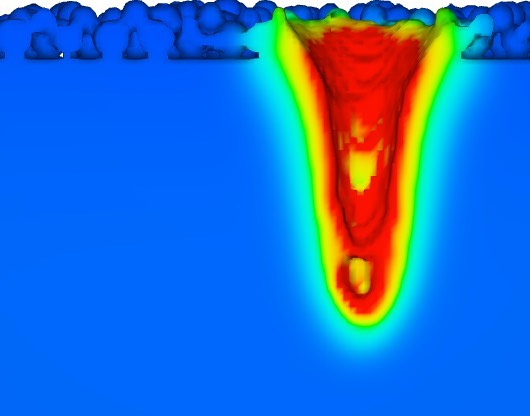 这个模型的一大亮点,就是能够模拟高能量密度下产生的匙孔孔隙(keyhole-induced pore)。市面上有些模型,在面对高能量密度情况时,直接"歇菜",根本无法模拟。而我们基于Flow3d 11.2版本构建的模型却能轻松应对。比如在传统的一些烂大街的SLM模型中,当尝试进行高功率模拟时,频繁报错,使得模拟工作无法顺利进行。但我们这个模型就不存在这样的问题,为高功率模拟提供了稳定可靠的环境。