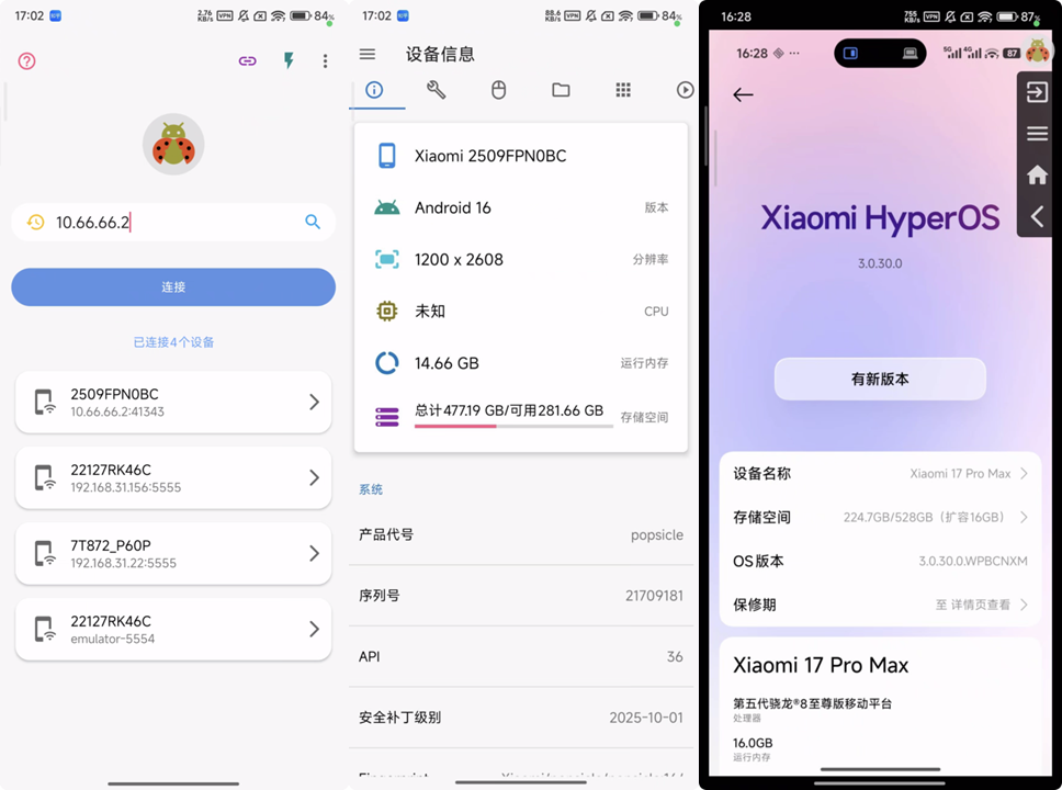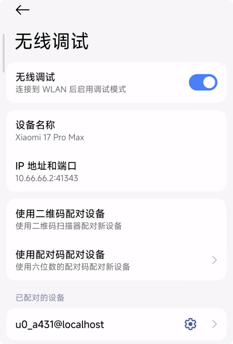 手机A:打开甲壳虫ADB助手,输入IP地址和端口,随后会弹窗是否允许调试,同意后即连接成功,仅第一次需配置,以后不需要。