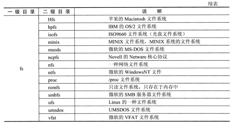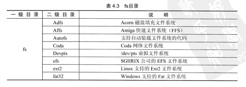 fs目录 - 包含了Linux所支持的所有文件系统相关的代码,每个子目录中包含一种文件系统