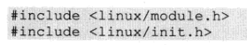 驱动模块会使用内核中的许多函数,所以需要包含必要的头文件。有两个头文件是所有驱动模块都必须包含的。这两个头文件是: