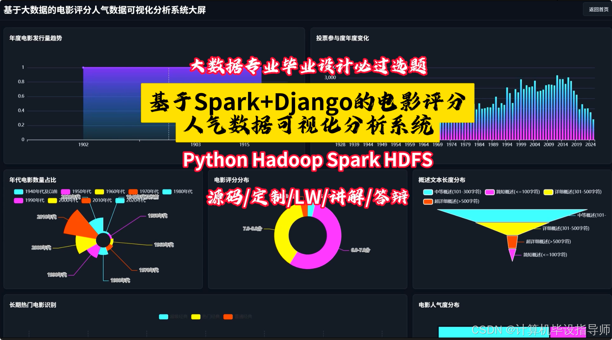 从数据处理到前端呈现,这个项目完整地走了一遍大数据分析的流程。虽然还有很多可以优化的地方,但它确实是一个很好的学习实践。希望这个基于Spark+Django的电影分析系统能给正在做毕设的你一些启发和帮助,祝你顺利毕业!