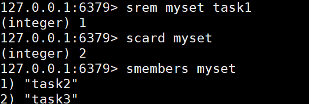 - 用法:srem 集合键 元素1 元素2 ...