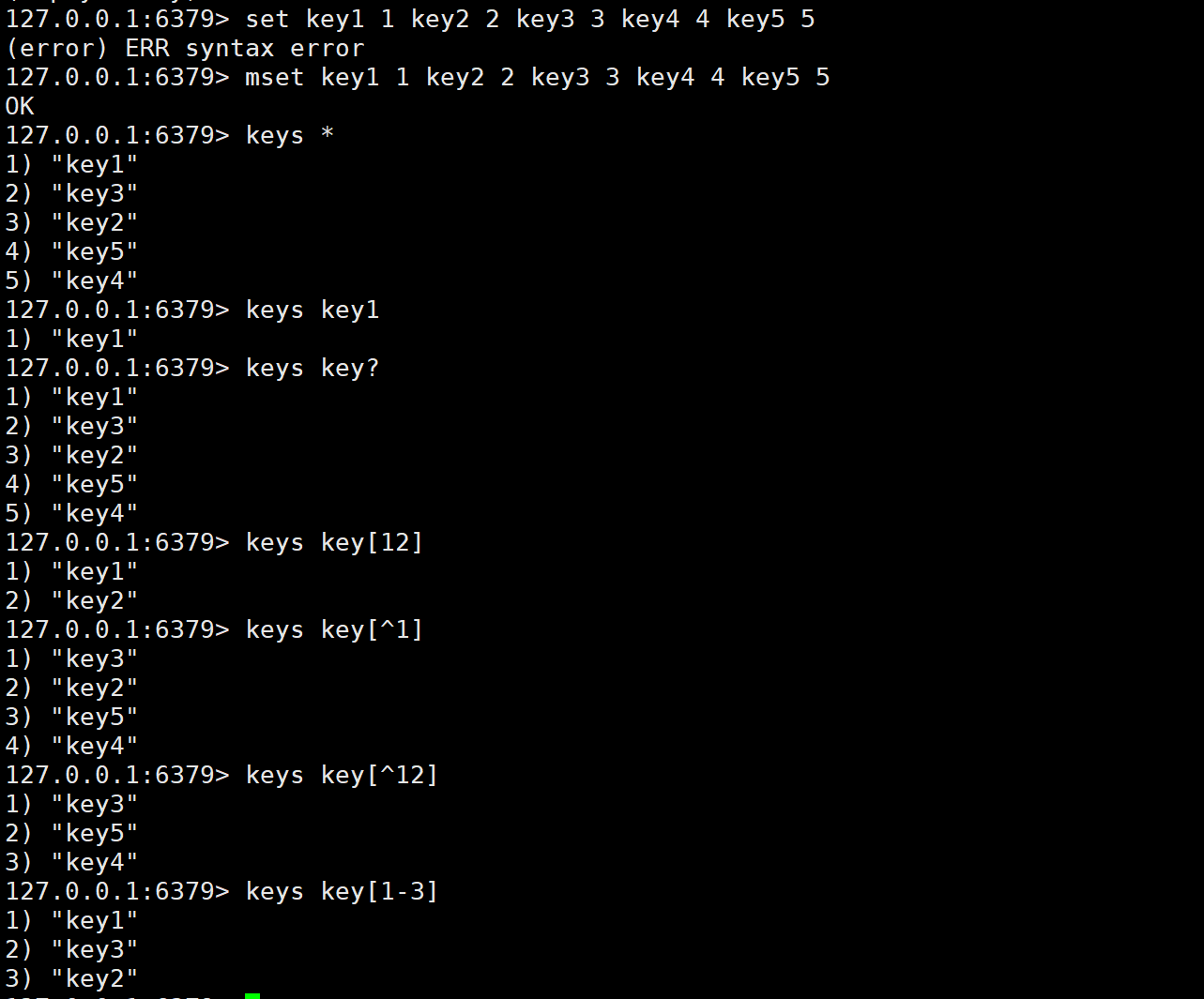 基本用法:keys 后面跟上模式字符串。