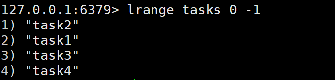 - 示例:lrange tasks 0 -1 获取所有元素