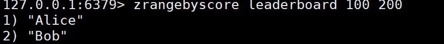 - 示例:zrangebyscore leaderboard 100 200