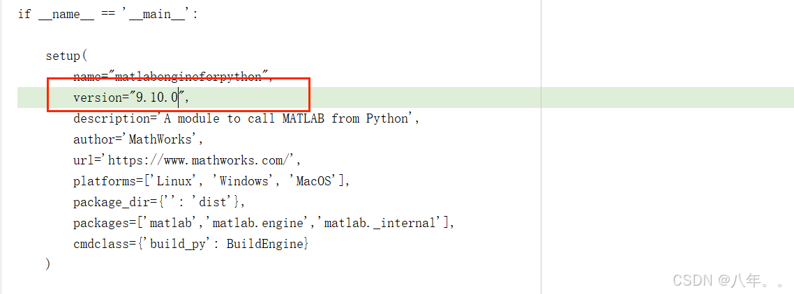 D:\appd\Matlab\MATLABR2021a\extern\engines\python\setup.py; - 打开文件,找到版本号定义行: