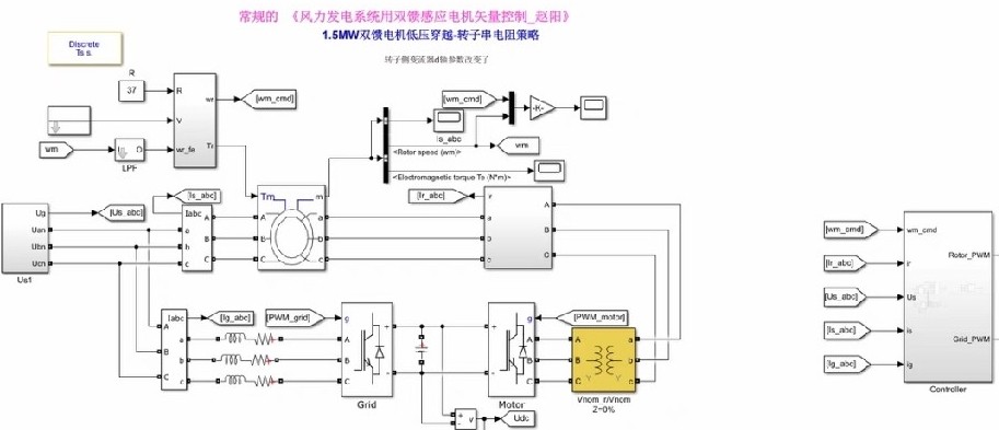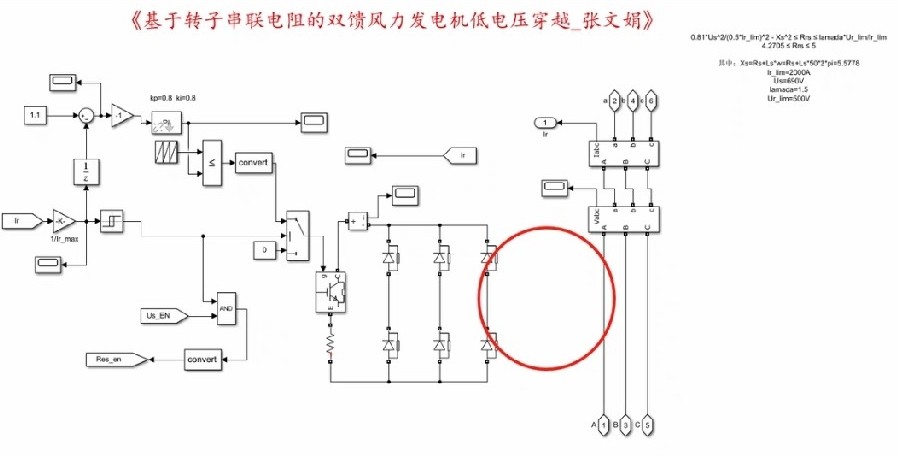 这部分代码,咱们先搭建了双馈风力发电机的模型(实际代码中这个模型搭建可复杂多啦,这里简单示意)。然后把刚才设定好的电阻整合到模型里,让这个电阻开始发挥作用。
