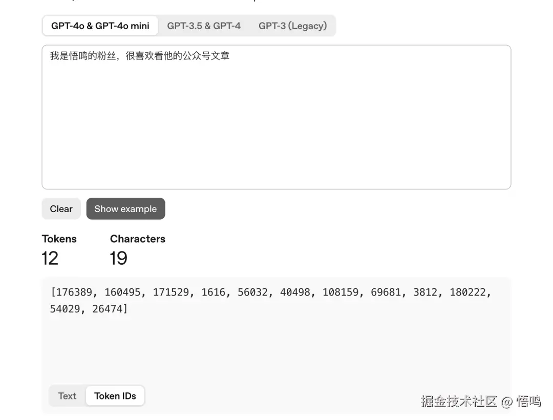 我们不仅可以看到它分词的文本,还可以看到每个 token 的 ID。