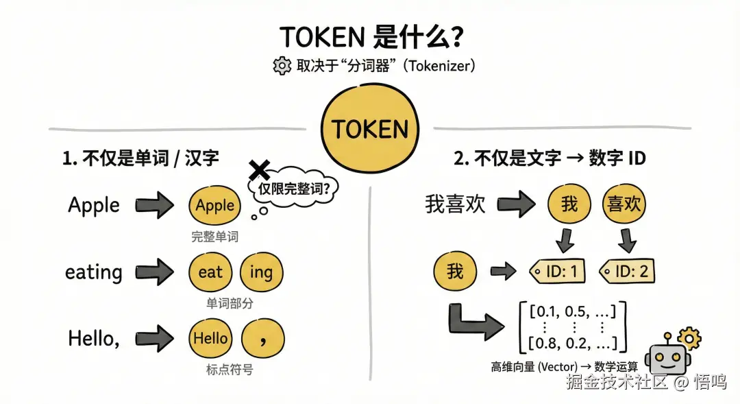 通过将文本切分为 Token 并转换为向量,AI 才能在神经网络中进行矩阵运算,从而捕捉词语之间的语义关系