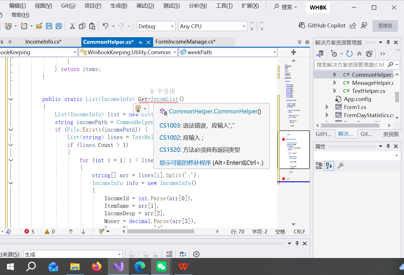 //拼接成一行(例如 "1;支出;早餐"),然后再次调用TextHelper.WriteMsg。