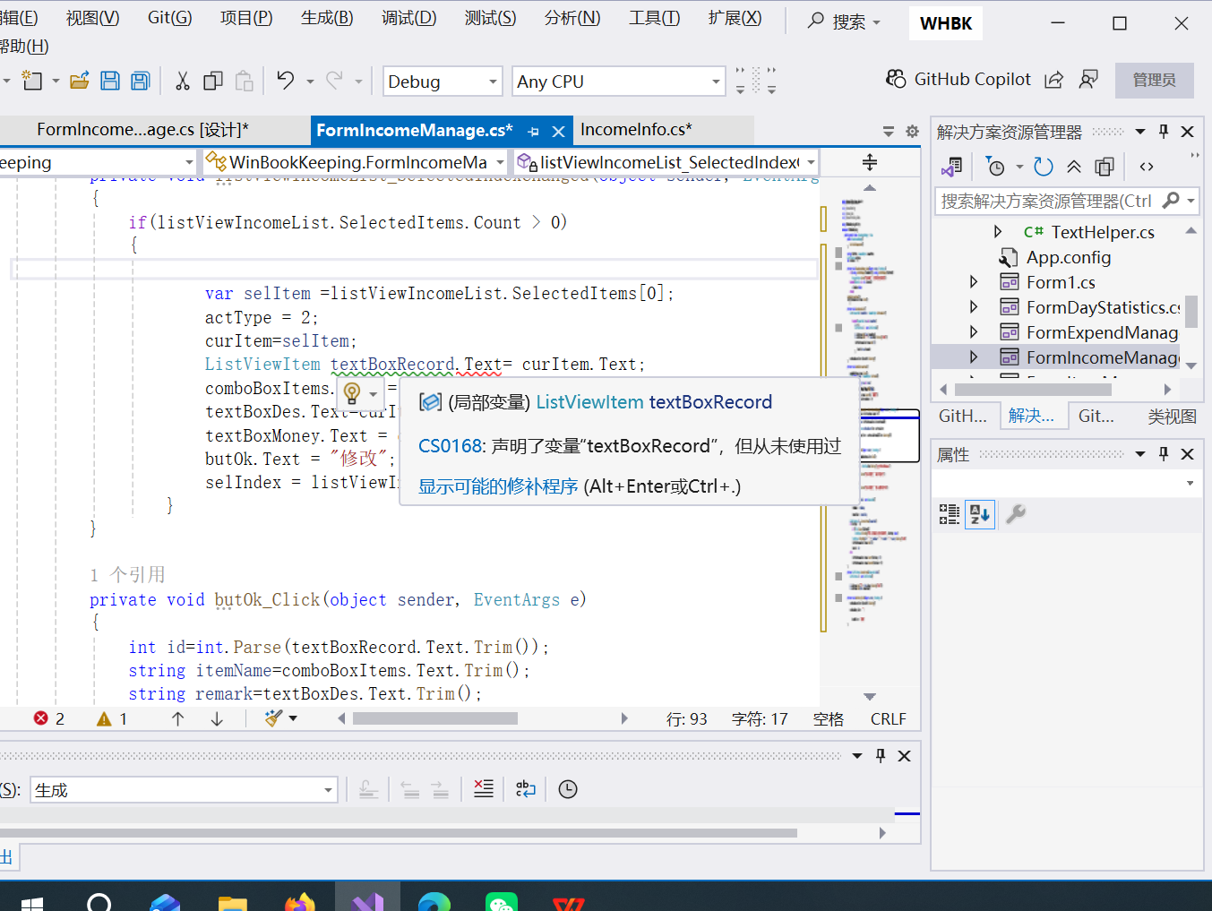 //与之前代码的协作:这个删除方法和你之前看到的 butOk_Click(保存)、listViewIncomeList_SelectedIndexChanged(选择项变化)等方法紧密配合。