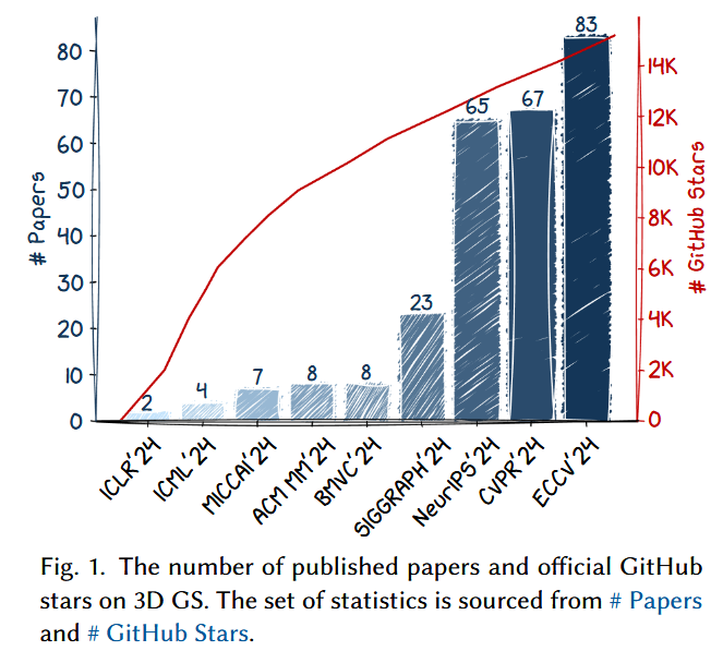 为了帮助读者跟上3D GS的快速发展,我们提供了关于3D GS的第一份调查,它系统地、及时地收集了关于该主题的最重要的文献。鉴于3D GS是一个非常新的创新( c. f.图1),本调查特别关注其原理和多样性。
