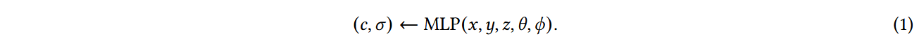 一个隐式的辐射场表示场景中的光分布,而不需要显式地定义场景的几何形状。在深度学习时代,神经网络经常被用来学习一个连续的体场景表示[ 152、168 ]。最突出的例子是NeRF [ 154 ]。在NeRF (图4a )中,使用一个或多个MLP将一组空间坐标( x , y , z)和观察方向( θ , φ)映射为颜色c和体积密度σ: