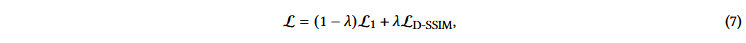 一旦完成图像的合成,就可以测量渲染图像与真实图像之间的差异。利用l1和D - SSIM损失函数对所有可学习参数进行随机梯度下降优化: