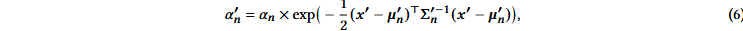 其中cn是学习过的颜色。最终的不透明度α′n是学习到的不透明度αn和高斯的乘法结果,定义如下: