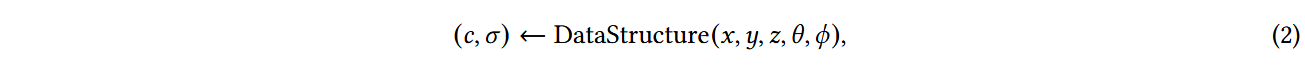 这种格式允许对复杂场景进行可微且紧凑的表示,尽管常常以体积射线行进带来的高计算负载为代价。值得注意的是,颜色c是方向依赖的,而体积密度σ不是[ 154 ]。
