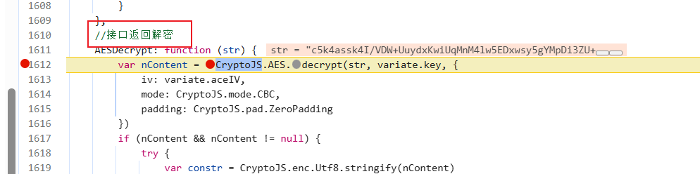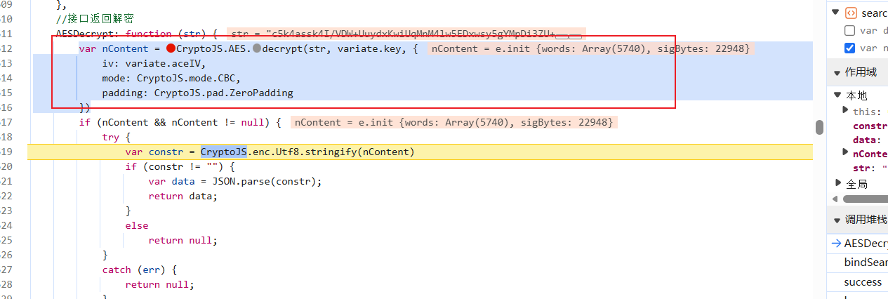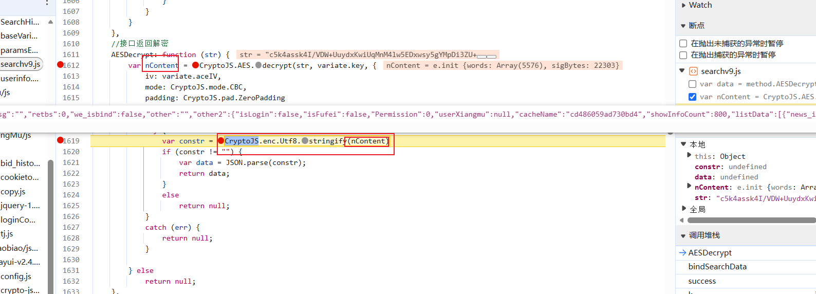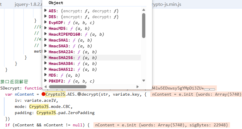 试过hook,直接pass掉,因为鼠标一移动到页面上就会断下来,可以试试再加些条件来判断(类似条件断点),本人不想想就直接关键字搜索了,搜的decrypt(然后全打断点段在这里: