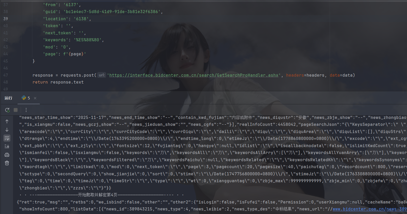 response = requests.post('https://interface.bidcenter.com.cn/search/GetSearchProHandler.ashx', headers=headers, data=data)