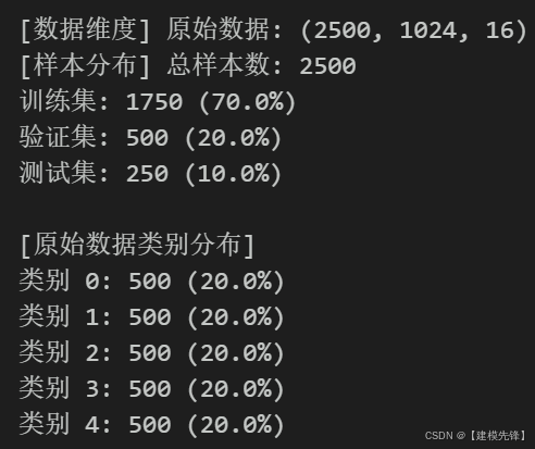 由于数据量过大,以一部分数据和四通道为例,通过滑动窗口制作数据集,并按照7:2:1均匀划分训练集、验证集、测试集,最后保存数据,划分完成的数据集分布情况如下: