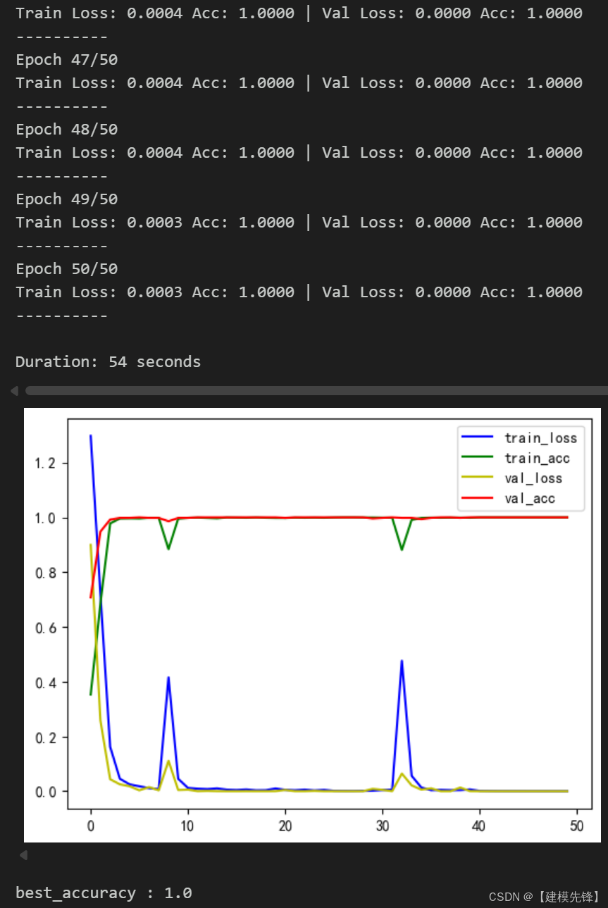 50个epoch,准确率100%,用 VMD+CNN-Transformer特征融合 网络分类效果显著,能够从多源故障信号特征中提取出对模型识别重要的特征,效果明显!