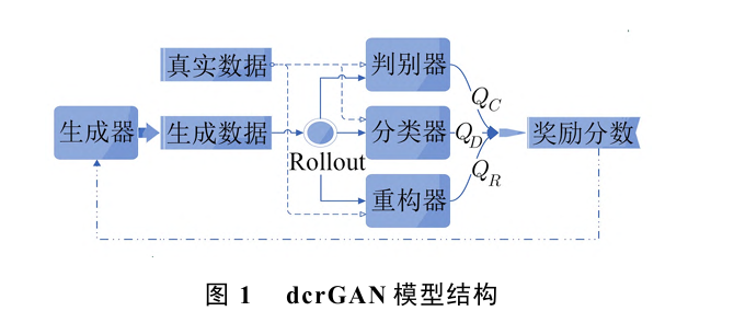 答:深度学习在生成文本方面缺少调整生成文本序列的属性特征或通顺性及健壮性的模块,因此从生成文本的属性特征与通顺性及健壮性出发,在生成对抗网络(GAN)+强化学习(RL)通用范式的基础上,通过增加控制生成文本类别的生成器和提升生成文本通顺及健壮程度的重构器,构建了中文虚假评论数据集生成(dcrGAN)模型,解决了中文虚假评论数据不足且难以构造的问题。