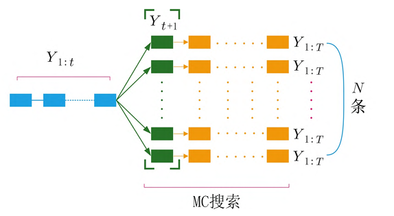Rollout策略是为了评估生成器在生成句子过程中的中间状态而设计的。具体来说,它使用蒙特卡洛(MC)搜索来采样剩余的词标记。