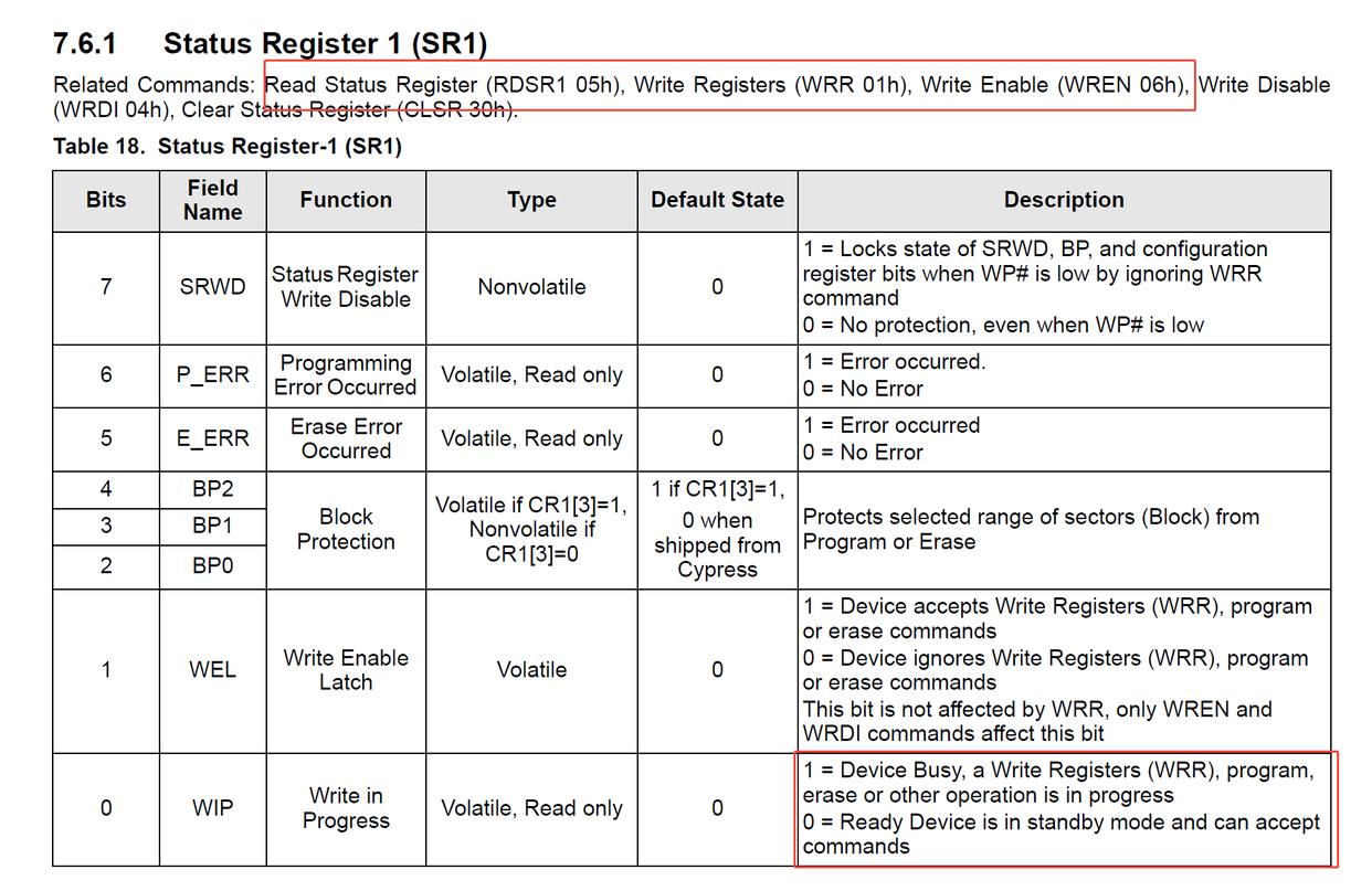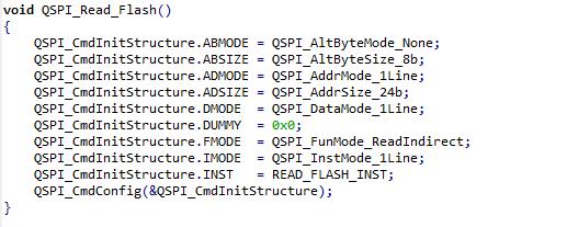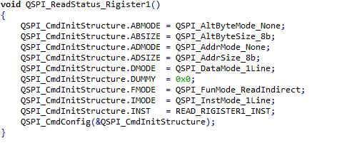 以下是读取SR1寄存器的相关配置,和擦除函数一致,区别在于指令,当然读者可以自行配置QSPI 为2线或4线。