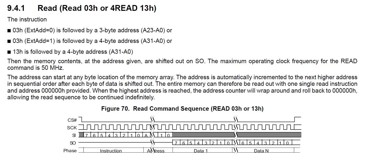 接上节,我们在最后调用了QSPI_ReadFlash函数,本章节详细讲解该函数,先看FLASH手册,