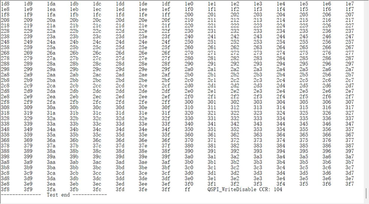 准备写入1024个数,0-0x3FF,共4K,从0地址开始,观察打印信息