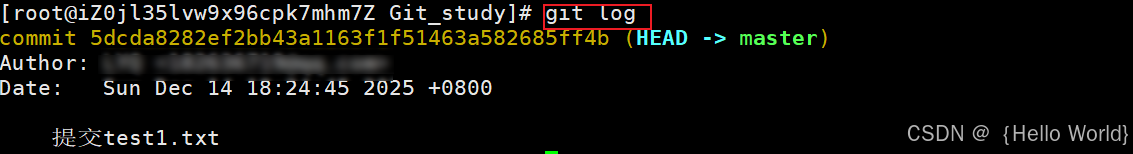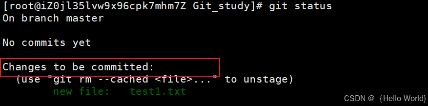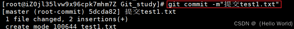 我们将刚刚在暂存区的test1.txt 文件进行提交: