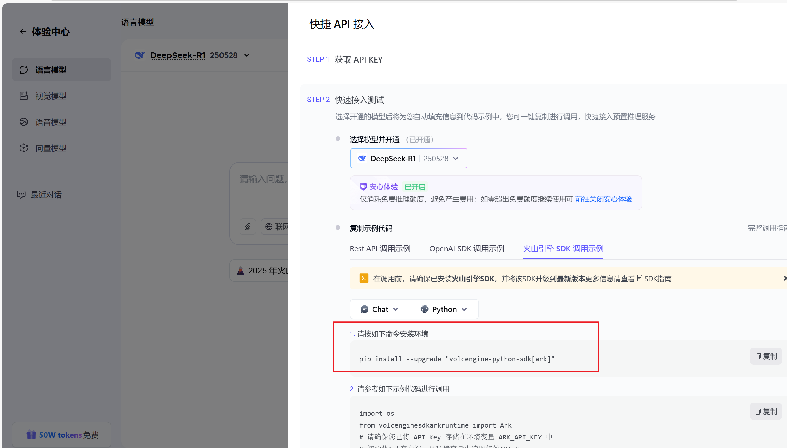 pip install --upgrade "volcengine-python-sdk[ark]"