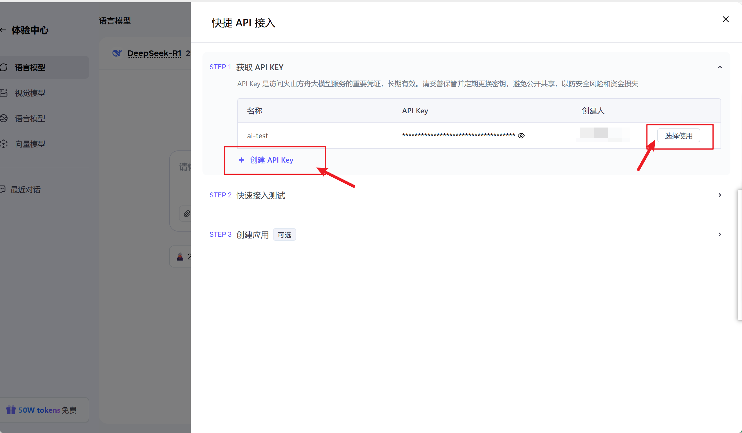 没有的新建一个apikey,有的就直接点击【选择使用】