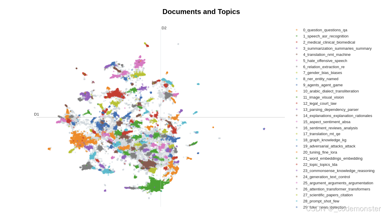 n_clusters=30:将主题分成30个簇进行聚类显示
