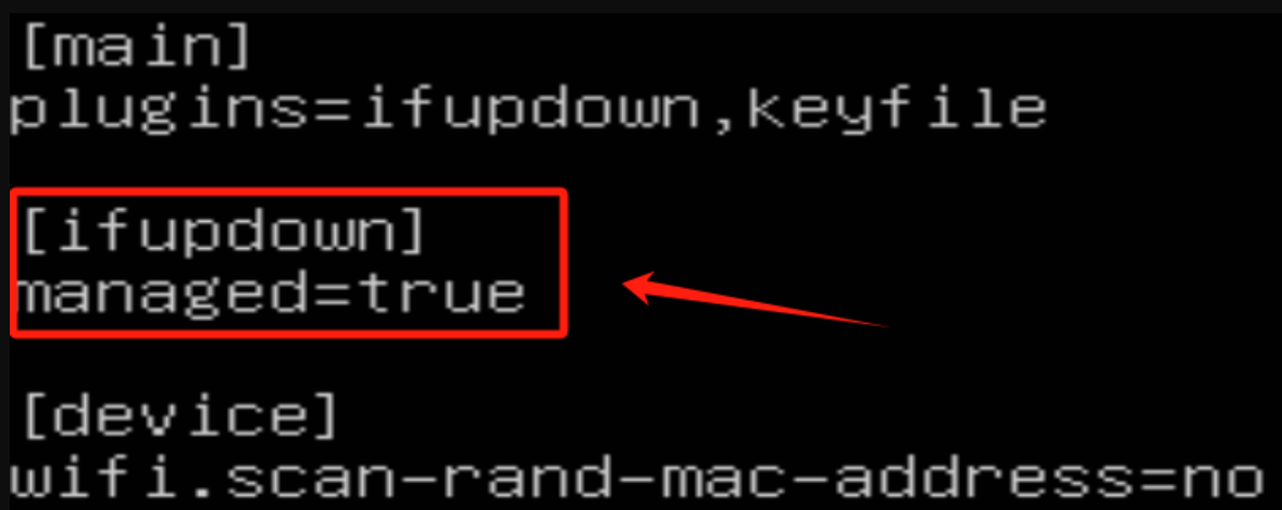 ① 在NetworkManager配置中指定ifupdown也可管理网络,这样如果系统原先存在有网络连接,在NetworkManager接管后原网络连接依旧存在不改变: