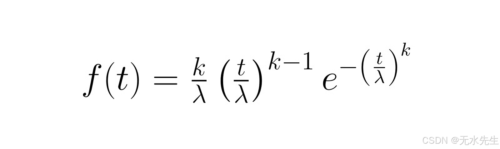 概率密度函数(PDF)描述了在任何特定时间发生故障的可能性。对于威布尔分布,其表达式为: