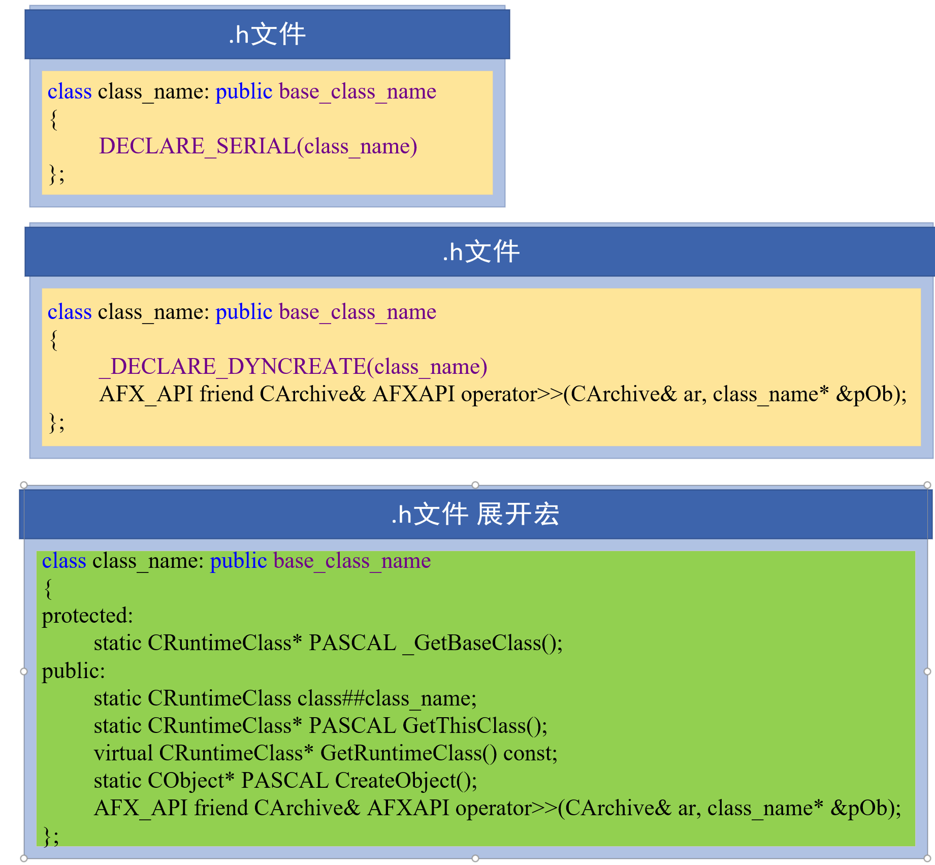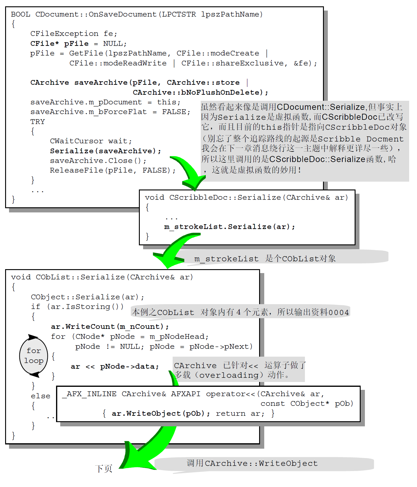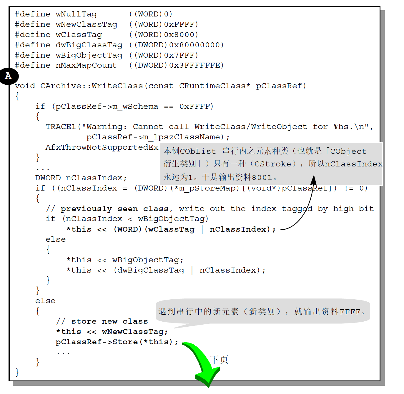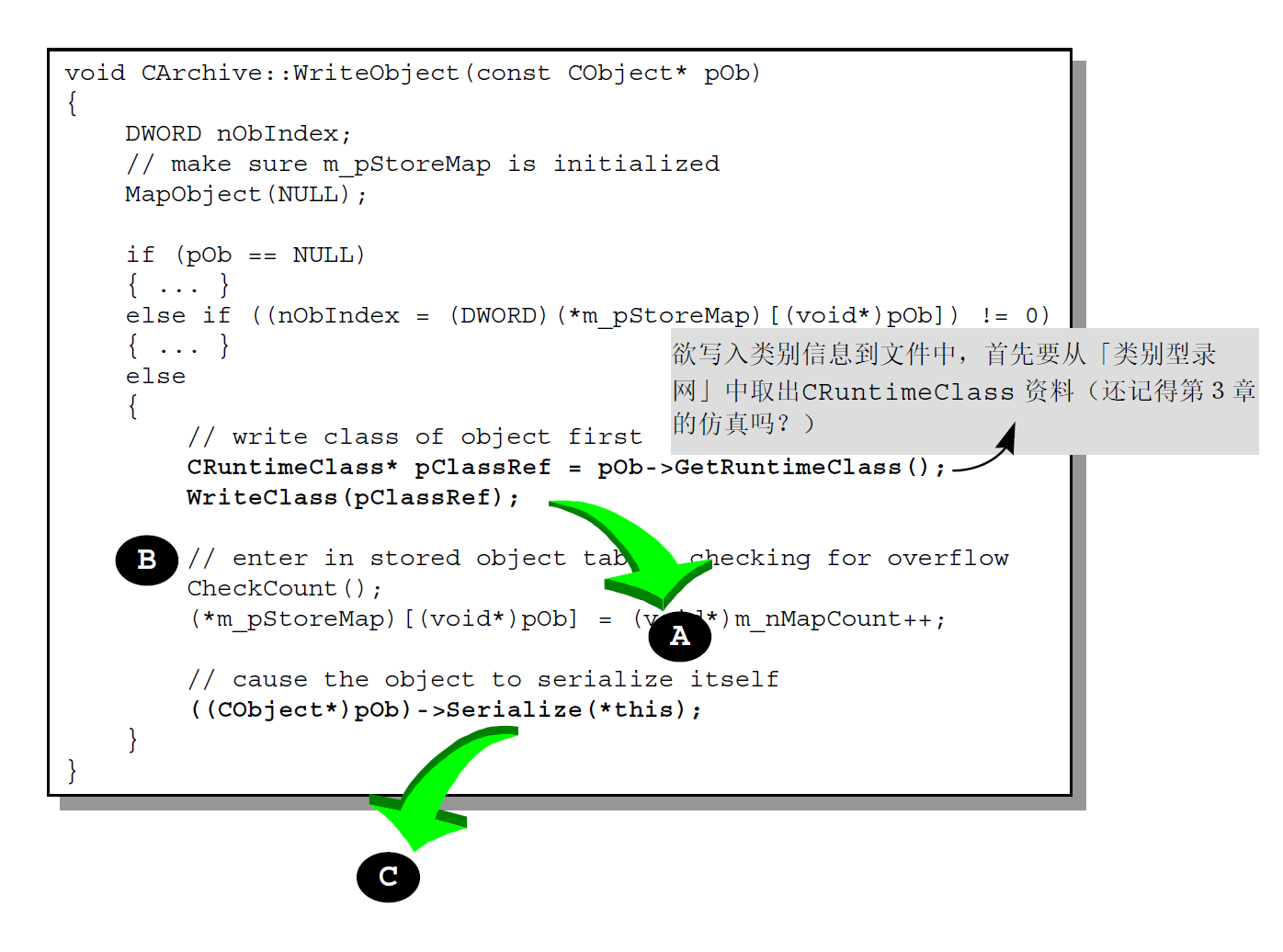 一个类别若要能够进行Serialization 动作,必须准备Serialize 函数,并且在「类别型录网」中自己的那个CRuntimeClass 元素里的schema 字段里设立0xFFFF 以外的号码,代表资料格式的版本。