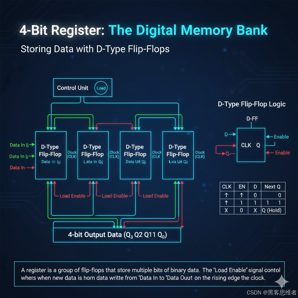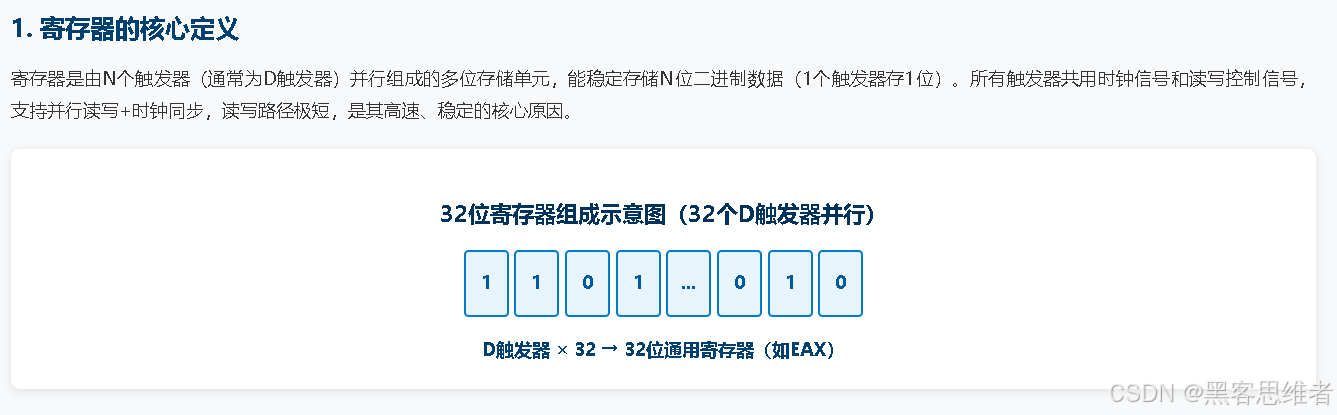 1. 寄存器的核心定义:由多个触发器并行组成的多位存储单元