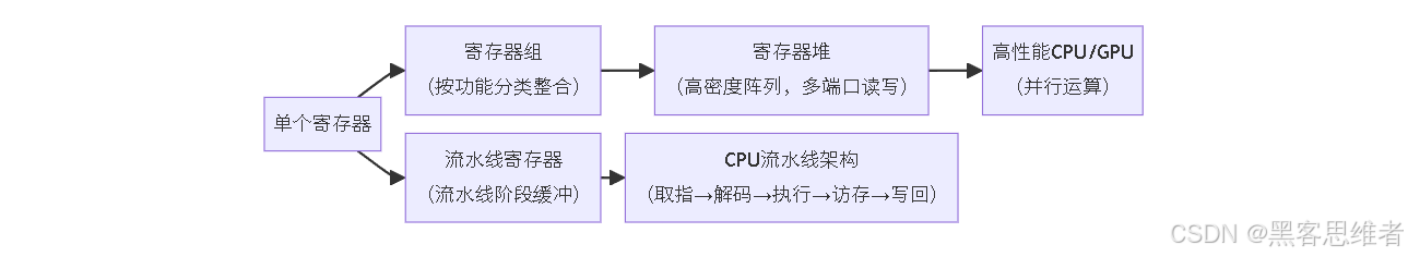 在高性能CPU(比如CPU、GPU)中,需要大量通用寄存器来支撑多任务、多数据的并行处理,这就需要"寄存器堆"------由大量通用寄存器组成的高密度阵列,采用"多端口读写"设计,支持同时读取多个寄存器的数据,供多个运算单元(比如多个全加器)并行使用。