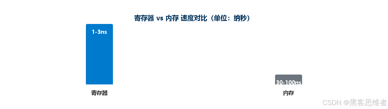 寄存器的读写速度比内存快100倍以上(寄存器:1-3纳秒;内存:30-100纳秒),核心原因有两个,都和硬件设计直接相关: