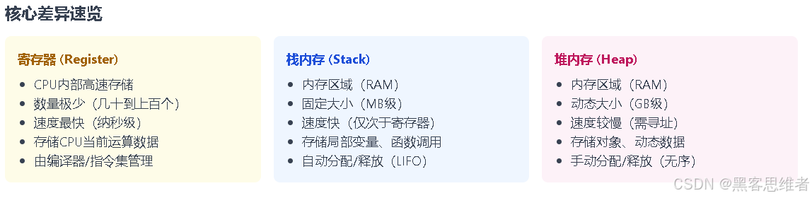 2. 寄存器的速度优势根源:物理位置+简化结构