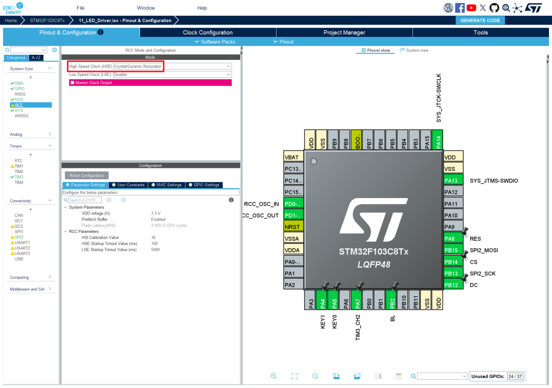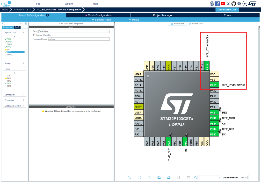 笔者使用ST7789屏幕观测,因此还启用了SPI接口