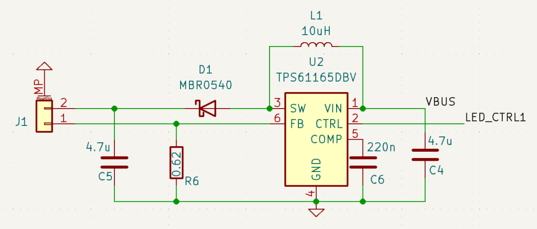 值得一提的是,把与TPS61165的CTRL相连的单片机的PA7引脚由PWM改成推挽输出,就可以实现点亮/熄灭LED,取决于IO电平的高低。