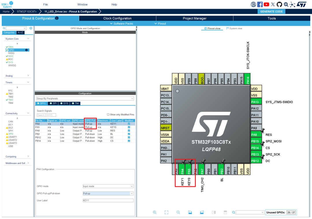主要涉及到TFT彩屏,按键输入,定时器PWM输出的内容,主要代码如下
