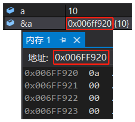 变量 a 对应的四个字节,这四个字节分别对应的地址: