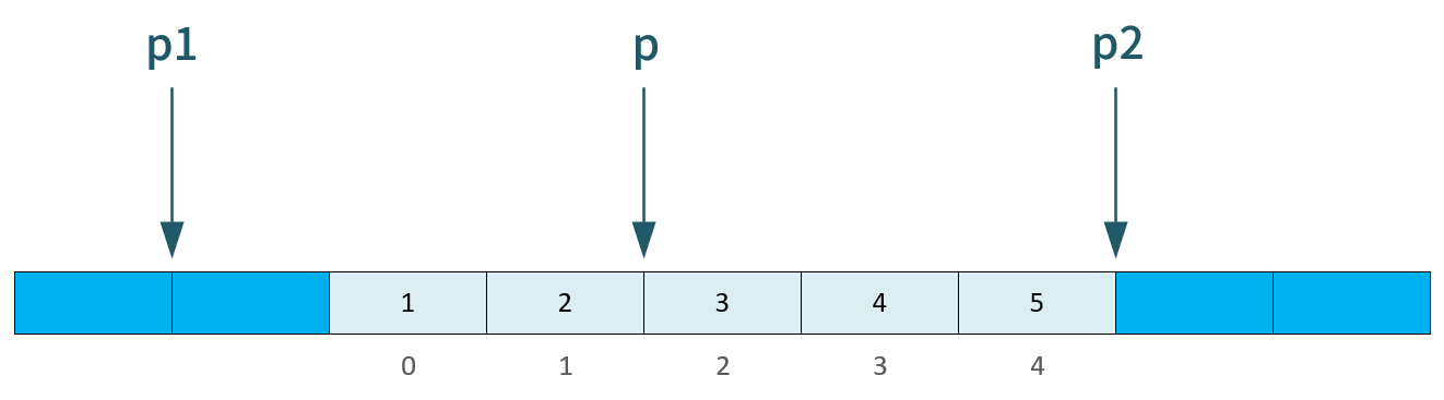 允许 指向数组元素的指针 与 指向数组末尾之后的内存位置的指针 进行比较,但不允许与 指向数组起始位置之前 的内存位置的指针进行比较